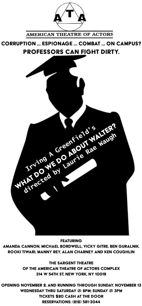 The stage will continue to call upon Ms. Waugh and her expertise with plays by Mr. Greenfield, his son and other talented playwrights. “Next I have several plays that I am looking to direct next year. Irving’s last play, MY MOTHER’S BOOKIE. I also have a play from Irving’s son Nathan Greenfield that I want to do along with a couple of plays from Norma Mortimer.” Having personally seen Ms. Waugh’s work, Mr. Greenfield’s work and several productions at The American Theatre of Actors, I highly recommend supporting these professionals and this institution.