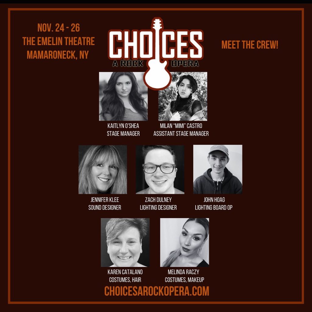 “Choices: A Rock Opera” returns to Westchester BEFORE GOING OFF-BROADWAY! The Emelin Theater for the Performing Arts, 153 Library Lane, Mamaroneck, NY, will host this limited run — November 24 & 25 @ 8:00 p.m. and November 26 @ 2:00 p.m. TICKETS NOW ON SALE at https://choicesarockopera.com/buy-tickets